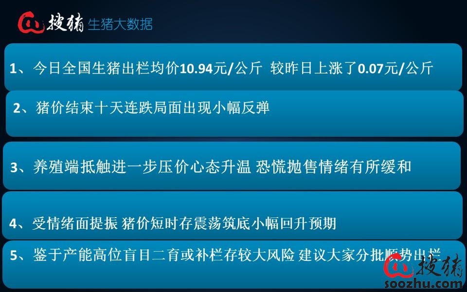 由于行业产能出清需时间来兑现,短期内供应压力难快速缓解,猪价走势很难实现实质性的反转,但受情绪面提振,猪价短时存震荡筑底小幅回升预期。鉴于产能仍处高位,盲目进行二次育肥或补栏存在较大风险,建议大家抓住时机分批顺势出栏。