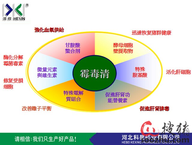 霉毒清的作用机理3:一套特殊活性酶彻底中和分解进入组织血液中的霉菌毒素。