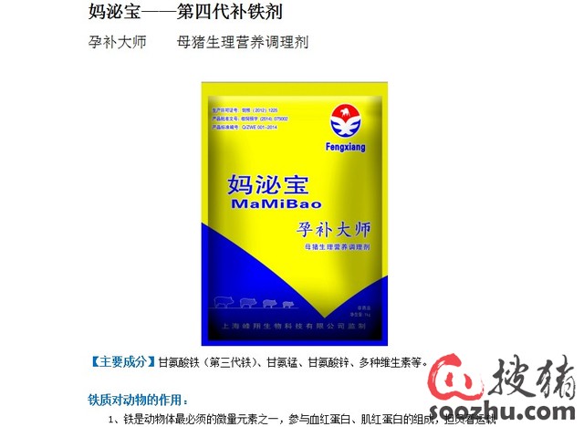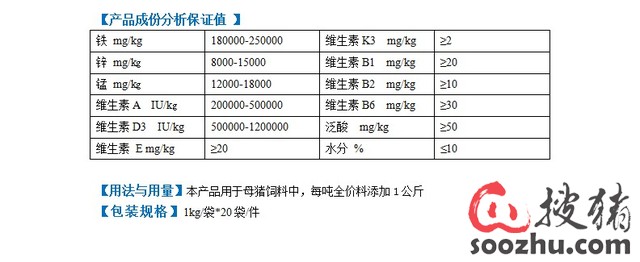 猪用预混合饲料添加剂补铁补血诱食促长复合维生素